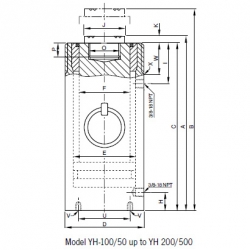 | YH-100/50 | 265 | 315 | 250 | 180 | 135 | 100 | 66 | 90 | 90 | 15 | - | M65x3 | 40 | 24 | 110 | 4xM12 | 70 | M180x3 |